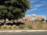 [Thursday] Today we left Midland after stopping at Denny's restaurant for breakfast. We drove to Odessa and visited with Kay's grade school friend, Carla, that now lives in a nursing home. We then drove to Crane where we purchased the headstone for our plots in Stanton. Afterwards, we stopped at Dairy Queen in Crane for a quick lunch and drove to Marfa. We checked into the Hotel Paisano, room 241. We ate dinner in the hotel restaurant, Jett's Grill. The hotel was named for the nearby Paiano Mountain Pass. It was built in 1930. The structure reflects Spanish Baroque styling. [Friday] We walked about three blocks to The Sentinel Marfa restaurant for breakfast. It is an interesting building that has adobe walls, with steel beams supporting everything. It is connected with the local Marfa newspaper. After we returned to the hotel, we had to change rooms for our second night here (they stay fully booked, it seems). The staff moved our bags to the new room. We drove around Marfa and after stopping to buy some fruit at the Get Go Grocery, we drove around the unusual town some more. There are so many unusual homes around town. We returned to the hotel at noon and our new room, 256, was ready. We then went back to the Sentinel and ate lunch. After lunch, we drove around and stopped briefly at the Blackwell School. It is a National Historic Site. It was for children of Mexican descent and the school dates back to the 1880's. It was not open.