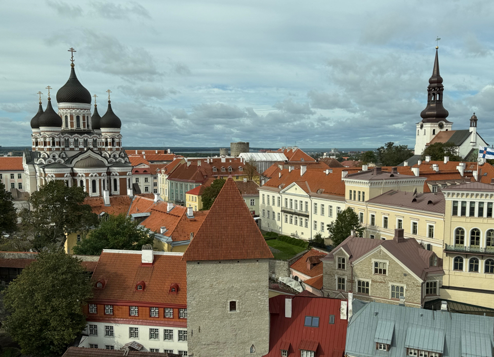 On the news today: Friday, three Russian fighter jets violated Estonian airspace and NATO jets were scrambled to escort them out of the airspace to Kaliningrad. [Sunday] This morning we attended the 10:00 am St. Olaf's Church service. It is a Baptist church. Everything was in Estonian language, the only word we understood was Amen. The music was some organ and a very good guitarist that played songs that you would hear played in an American church. He may have been a guest, because there was applause when he finished. The attendance looked small, but was probably several hundred. The church is very large. It was definitely Baptist - they took up a collection. The preacher used Charlie Kirk several times in his sermon. The sermon lasted over an hour and a half on hard wooden benches. A more contemporary service began at noon. It is believed to have been built in the 12th century and to have been the centre for old Tallinn's Scandinavian community before the Kingdom of Denmark conquered Tallinn in 1219. Its dedication relates to King Olaf II of Norway. After a little while in the hotel restaurant, we walked to a lot of places I had marked on Google maps. We went past Toompea Castle again, and into Alexander Nevsky Cathedral and went inside. The cathedral is an Eastern Orthodox cathedral that was built in 1894-1900, when the country was a part of the former Russian Empire.