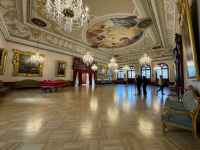 We then walked nearby to Riga Castle, located on the banks of River Daugava. The castle was founded in 1330. Its structure was thoroughly rebuilt between 1497 and 1515. Upon the castle's seizure by the Swedes, they constructed spacious annexes in 1641. Since the president of Latvia lives and serves there now, we were not able to get a tour. We took a Bolt to Saint Gertrude's Evangelical Lutheran Church. The church was closed because of work on the floor. We walked to Alberta Street and looked at all the fancy Art Nouveau buildings along the short street. It was built in 1901 and named after Bishop Albert, who founded Riga in 1201. We walked to Nativity of Christ Orthodox Cathedral. It is the largest Latvian Orthodox cathedral in the city. It is incredibly beautiful inside and outside. It was built from 1876 to 1884 for the city's growing Russian community. During the Soviet occupation in the 1960s they turned it into a lecture hall and planetarium. It was restored in the 1990s and reopened in 2000. The interior decorations were nearly destroyed and are still being replaced.
