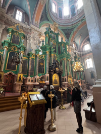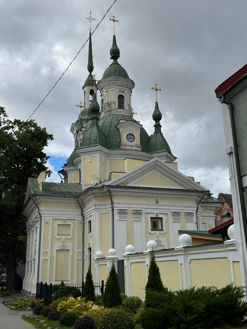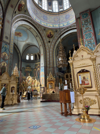We decided to spend today visiting churches since it was Sunday. We started at the Orthodox Church of the Holy Spirit and stayed for almost an hour. It is a Russian Orthodox Church, and the service was not in English. The choir was excellent and sang throughout the service. After that service seemed to be ending, we went nearby to The Church of St. Casimir and Jesuit House and stayed until the Catholic service ended. That service was also not in English.