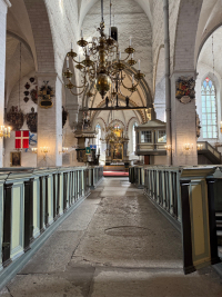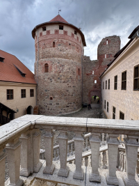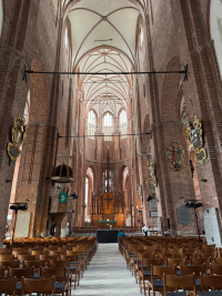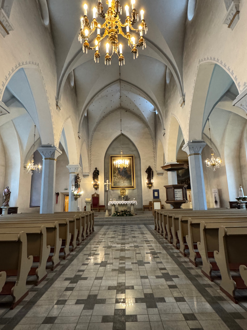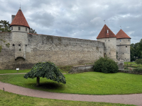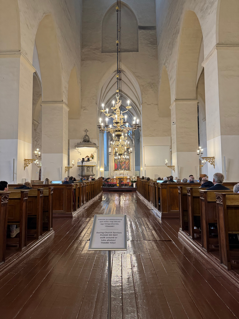 We took a Bolt back to the hotel and terminated our sight seeing in Riga. [Friday] This morning we booked a private car and driver from Riga to Tallinn, Estonia, with stops at various tourist sights. First, we stopped at Turaida Castle and toured the 13th century complex. A large portion is in ruins, but some has been restored. Work continues on the restoration. We passed from Latvia into Estonia and stopped in a few hours at a Parnu. It is a tourist town located on Parnu Bay. It is a popular destination in the summer. It is known for its 19th century wooden villas. We walked through the old town for about 30 minutes. We stopped at Saint Catherine Curch and went inside.