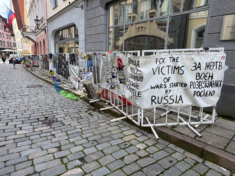 There were abundant signs of support for Ukraine in all the Baltic countries. There was one large display about a block long on the street, that was apparently being guarded by police to make sure it was not vandalized. Ukrainian flags were flying in all the Baltic countries we visited.