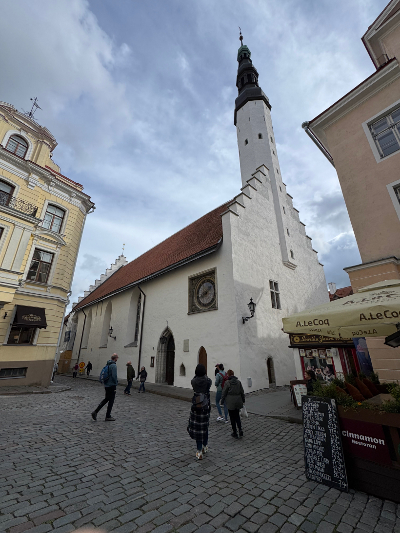 We walked to the House of Black Heads and apparently it is closed on Monday. Next we walked to Holy Spirit Church, a Estonian Evangelical Lutheran church, and went inside. Interesting thing about this church is that it has two naves, separated by large supporting columns. The nave that the attendees could see the altar was for the wealthy - along with their separate church entrance. The other nave on the right side was for the poor - and they had a separate entrance.