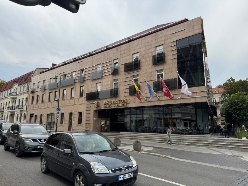 [Wednesday, September 10] This afternoon, we took Uber to IAH and at 2:50 pm we boarded Lufthansa LH441, a B747-8 airplane, and we pushed away from the gate on time at 3:35 pm. We had a good dinner and a reasonably good night sleep. We had breakfast as we approached Frankfort. [Thursday] As we arrived in Frankfurt at 8:15 am. We changed flights and took Lufthansa LH894 at 9:45 am from FRA to Vilnius VNO. We were on an Airbus A320-200. We arrived at 12:51 pm and took a taxi from the airport to the Amberton Cathedral Hotel in Vilnius Old Town. We were able to get our room about an hour and a half before the 3:00 pm checkin. We walked around the hotel area and went inside Vilnius Cathedral, which was just across the street from our hotel. They were setting up on the church parking lot for the Vilnius Marathon which was going to take place on the weekend. The church dates from the 18th century. The Soviets closed the church in 1950 and used it as a garage for truck repairs. It was returned to the Catholic Church in 1989. We walked to where we could see other historic buildings. Later we walked down to Vilnius G street and ate dinner. This is a pedestrian street with lots of restaurants. Lithuania was not overrun with tourists. There were a few, but they were not a problem.