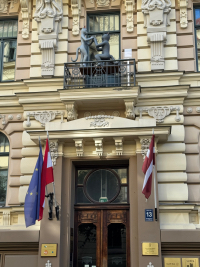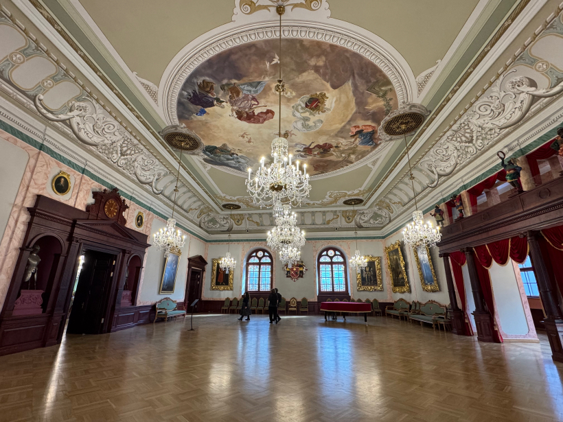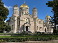 We then walked nearby to Riga Castle, located on the banks of River Daugava. The castle was founded in 1330. Its structure was thoroughly rebuilt between 1497 and 1515. Upon the castle's seizure by the Swedes, they constructed spacious annexes in 1641. Since the president of Latvia lives and serves there now, we were not able to get a tour. We took a Bolt to Saint Gertrude's Evangelical Lutheran Church. The church was closed because of work on the floor. We walked to Alberta Street and looked at all the fancy Art Nouveau buildings along the short street. It was built in 1901 and named after Bishop Albert, who founded Riga in 1201. We walked to Nativity of Christ Orthodox Cathedral. It is the largest Latvian Orthodox cathedral in the city. It is incredibly beautiful inside and outside. It was built from 1876 to 1884 for the city's growing Russian community. During the Soviet occupation in the 1960s they turned it into a lecture hall and planetarium. It was restored in the 1990s and reopened in 2000. The interior decorations were nearly destroyed and are still being replaced.
