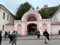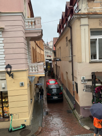 We stopped on the way to the hotel at the Saskaita Greek restaurant and ate dinner. The food was delicious. [Saturday] Today the rain was gone and the temperature was in the 50's. After breakfast in the hotel, at 10:00 am we took the Walking Tour of Vilnius Old Town with snacks. The tour lasted 2-1/2 hours and was very enjoyable. The guide was quite funny and the snacks were hand made traditional Lithuanian snacks.